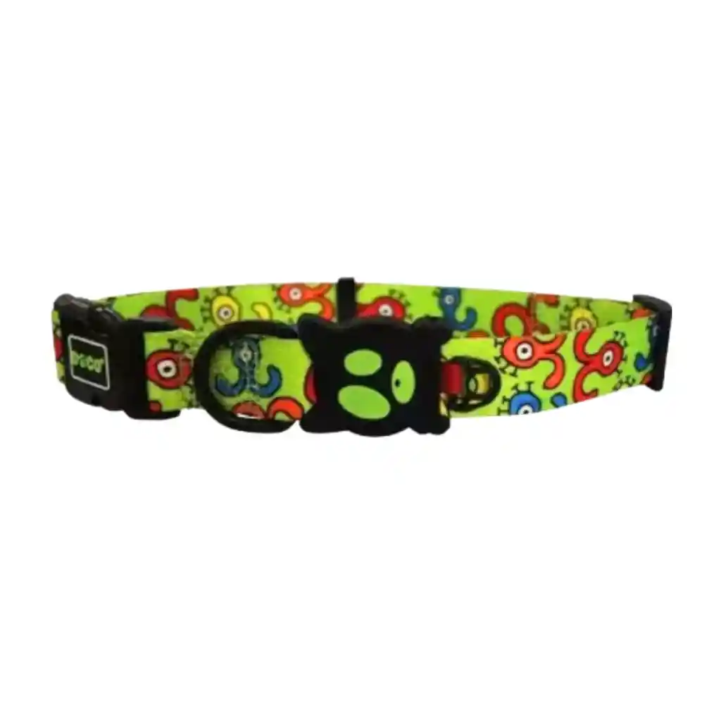 Collares Doco Loco con entretenidos diseños modernos Ajustable para todos los tamaños: diseñado con triple deslizamiento ajustable para un fácil ajuste de tamaño completo. Hebilla de liberación lateral de plástico duradero que se cierra rápidamente y se mantiene cerrada. Para el mejor ajuste de tu perro, consulta nuestra tabla de tallas para obtener la mejor medida del cuello. Diseños brillantes y llamativos: impresiones ecológicas coloridas y divertidas diseñadas con nuestros patrones locos y de moda. Hardware único y piezas de metal anodizado negro totalmente soldadas. Resistente a cualquier condición meteorológica: el diseño de transferencia de calor es resistente al moho, al envejecimiento y a la abrasión. Mayor resistencia a la tracción y resistente a la deshilachación. Anilla en D totalmente soldada para una fijación rápida y fácil. Materiales de alta calidad: 100% alta calidad de transferencia de calor denso premium cincha para mayor durabilidad. Circunferencia Cuello (Talla L) 45-68 cm