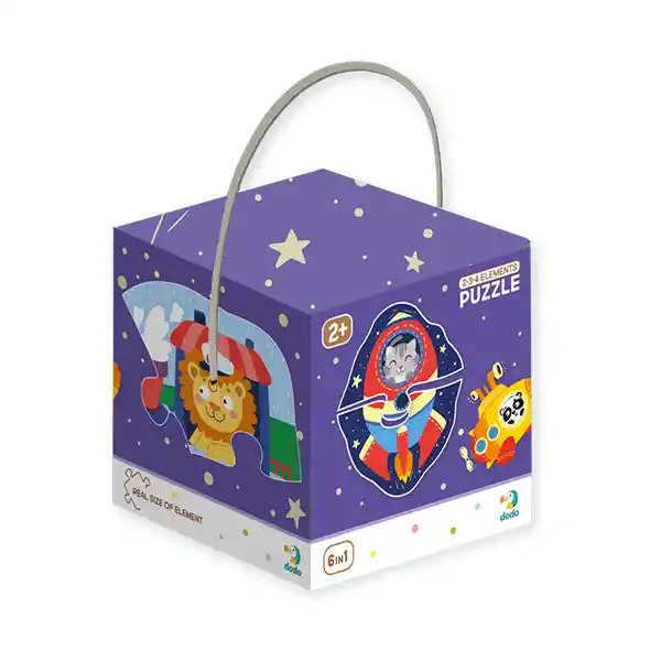 Rompecabezas 6 en 1 de Transportes. Contiene 6 Puzzles, Cada Uno de Los Cuales Consta de Dos, Tres o Cuatro Elementos. Edad Recomendada: a Partir de 2 Años. Sus Formas Son Irregulares Con un Máximo de 15 x 14,5 cm .