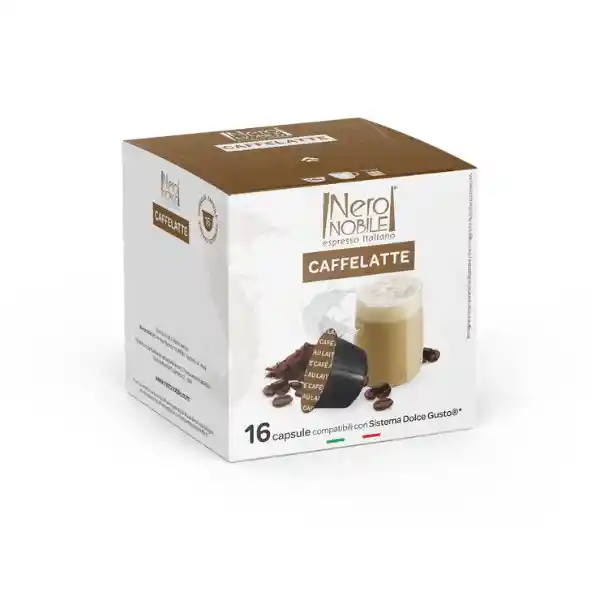 Café y doble leche se mezclan y al servir se aprecia una capa de espuma. Cápsulas compatibles con sistema Dolce Gusto todo en una cápsula. Rendimiento óptimo 180ml (5/7). 16 cápsulas por caja, todo en una cápsula. Información nutricional cada 100g: Energía (kcal): 390 – Grasa 11g total – Grasa saturada: 7,2g – Carbohidratos totales 46,5g – Azucares: 37,5g – Proteinas: 23,8g Sales: 1,1g