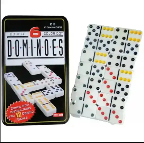 Juego de dominó con 28 dominós de colores con 12 instrucciones Juego de dominó con 28 piezas con puntos de colores Viene con 12 instrucciones para juegos de dominó Apto para niños mayores de 6 años. Desarrolla tu pensamiento lógico y ejercita tu mente