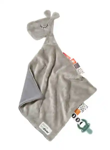 Los Más Pequeños Pueden Acurrucarse Con la Suave y Cómoda Manta Raffi. También Podrán Explorar y Entretenerse Con Las Divertidas Etiquetas y Las Diferentes Texturas. Tiene un Clip de Velcro Especialmente Diseñado Para Mantener Los Chupetes Siempre Cerca de Los Más Pequeños. Ideal Como Regalo Para Recién Nacidos. Color: Gris Material: 50% Algodón 50% Poliéster Tamaño: 30 x 30 cm. Lavable a 40° C. No Secar en Secadora.