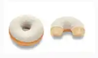 Donut 73 gr rellena con crema de almendras, cobertura de chocolate blanco y coco.