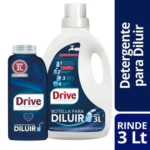 Drive pack para diluir contiene detergente líquido para diluir más una botella de 3L vacía para hacer la dilución. Este pack con su nueva tecnología te permite tener lo mejor de Drive en 3 simples pasos: agregas 2,5 L de agua, luego agregas Drive para diluir 500 ML. packing: Sin Packaging