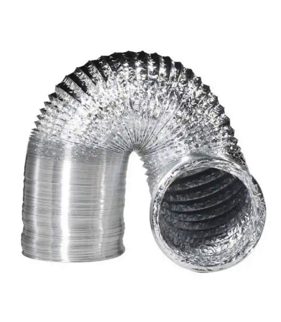 tubo flexible de aluminio y poliéster laminado con chasis encapsulado de acero para la extracción e inducción de aire. Fácil de instalar y muy económico, se suministra en envases individuales. Se fabrica en todas las medidas para los extractores. Producto fabricado en Europa. ESPECIFICACIONES: Material: Aluminio - Poliéster Diámetro: 102mm Longitud: 10m