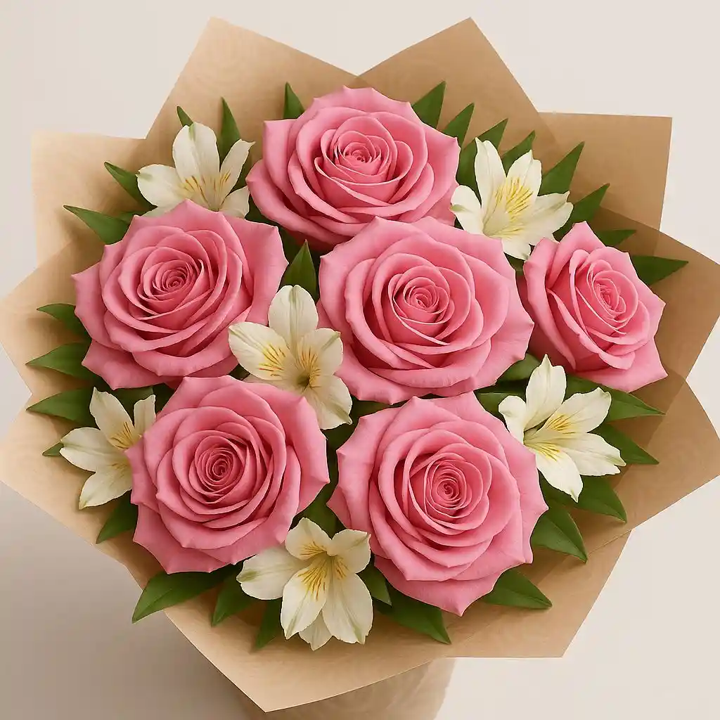 La delicadeza de las rosas rosadas se fusiona con la frescura de las alstroemelias en un ramo que transmite ternura, cariño y elegancia. Ideal para regalar amor suave, agradecimiento o un detalle romántico sin exageraciones. Un clásico delicado que nunca falla.