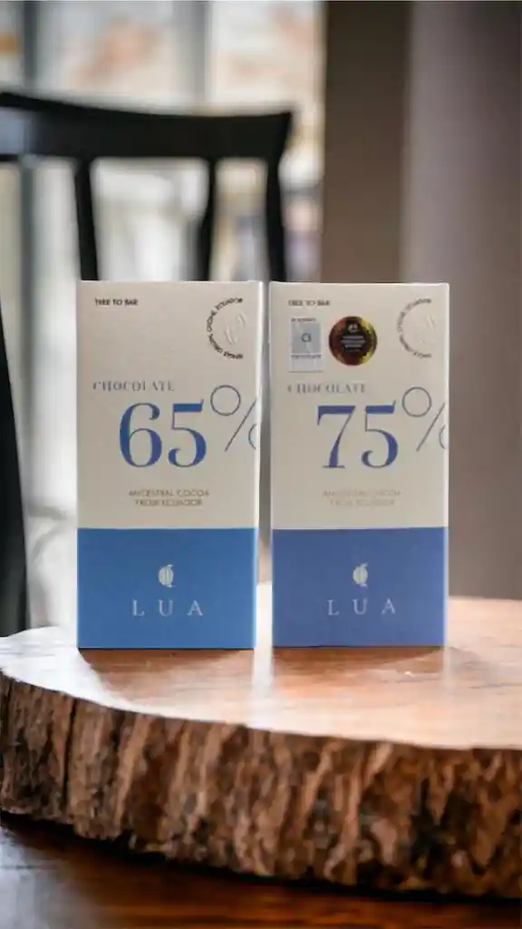 Comparte estos finos chocolates con tus seres queridos. Incluye: Una barra Chocolate 65% Una barra Chocolate 75% Historia Al Oeste de Ecuador, muy cerca de la costa, especificamente en Chone, Manabí, se cultivan nuestros cacaos ancestrales del tipo "nacional". Con más de 140 años de antigüedad, nuestra edición LUA Chone, Cosecha 2019, nos lleva a los orígenes del cacao, con un sabor y aroma único e inigualable.