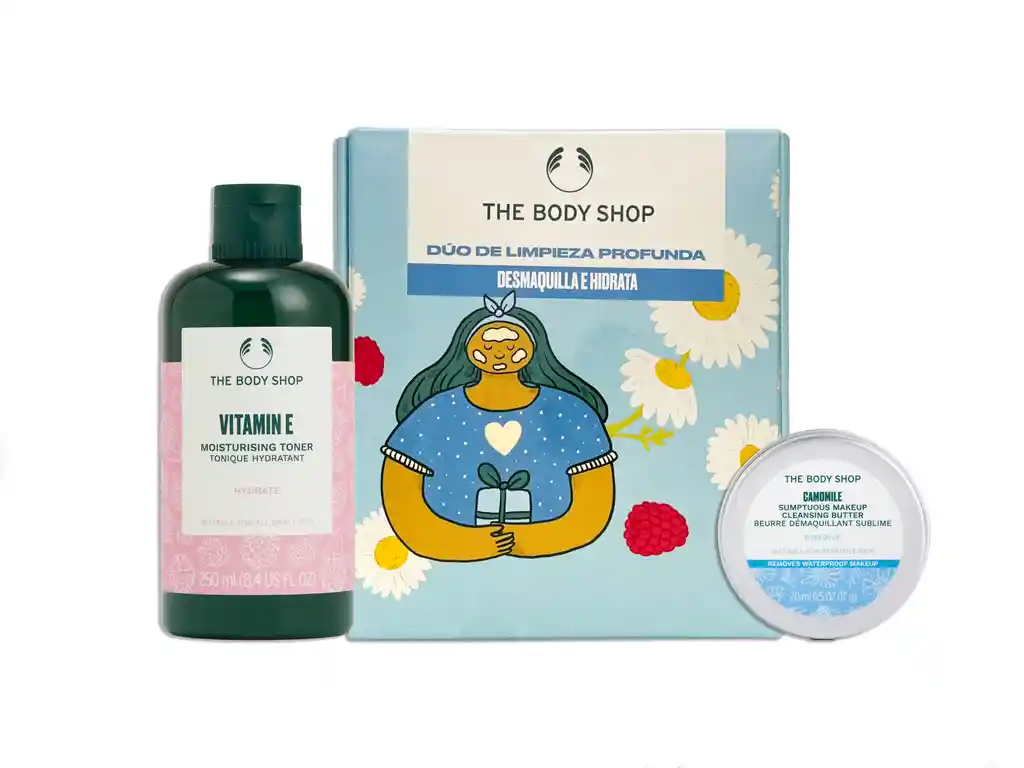 El set Dúo de Limpieza Profunda está diseñado para ofrecer una limpieza efectiva y una hidratación que prepara la piel para el cuidado posterior. Contiene una Manteca Desmaquillante de Manzanilla y un Tónico Hidratante de Vitamina E, este conjunto elimina impurezas y deja la piel suave y fresca. Manteca Desmaquillante de Manzanilla: Duro con el maquillaje, pero suave con la piel. Nuestra Manteca Limpiadora de Camomile elimina suavemente el maquillaje en menos de 30 segundos. Con una textura mantecosa rica pero ligera, ayuda a eliminar impurezas, SPF y contaminantes mientras deja la piel nutrida e hidratada. Tónico hidratante de Vitamina E: Elimina los restos de la limpieza y las impurezas sin resecar la piel. Formulado para lograr una piel suave, lisa y flexible: Elimina los restos de suciedad y de maquillaje. Purifica los poros, refresca, calma y suaviza la piel. Es apto para todo tipo de piel. Contiene 1 Manteca Desmaquillante de Manzanilla de 20ML y 1 Tónico Hidratante de Vitamina E de 250ML. Adecuado para todo tipo de pieles, incluidas las sensibles y secas. Enriquecido con ingredientes de origen natural. Dermatológicamente y oftalmológicamente probado. Todas tus compras durante noviembre y diciembre donan un porcentaje a la Asociación Chilena de Comercio Justo. Envases reciclables. Solo lleva tus botellas y latas vacías a nuestras tiendas y nosotros los reciclamos por ti.