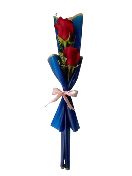 Hermosas Rosas en Duo con toques de verde y envueltas en fino papel empavonado, con amarre de cinta satin.