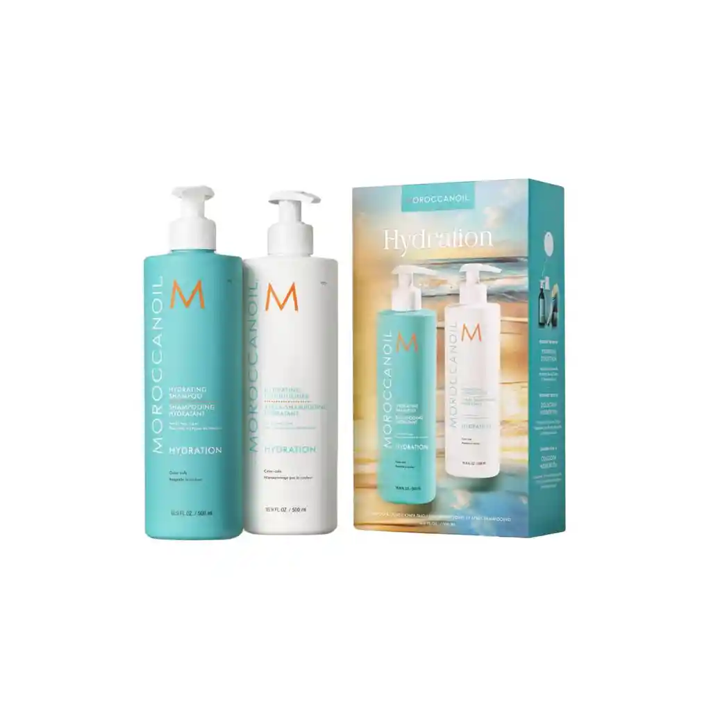 Este kit de cuidado capilar de edición limitada incluye dos superventas de Moroccanoil: Shampoo y Acondicionador en tamaño de medio litro, que proporciona al cabello la hidratación óptima, al mismo tiempo que limpia y suaviza. Incluye: • Shampoo Hidratante (500 ml): Fórmula suave para uso diario que aporta hidratación al instante a todo tipo de cabello. • Acondicionador Hidratante (500 ml): Fórmula nutritiva para uso diario que ofrece una hidratación óptima a todo tipo de cabello.