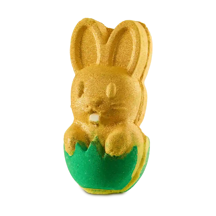 Olvídate de las lluvias de otoño con un baño que reúne toda la alegría de la época soleada. Sumérgete en un remolino de aromas estacionales y aguas verdes y doradas (¡con una pequeña gelatina en el interior!). Estarás tan a gusto como en el interior de una madriguera reconfortante. La fabricante de Lush, Kamila Barska, se inspiró en los recuerdos de las vacaciones de primavera con sus abuelos. “Pasar Semana Santa en casa de mi abuela fue un momento especial para mí: el campo, con sus tranquilos prados y sus juguetones conejitos, hizo que mis vacaciones fueran aún más especiales. El aire estaba lleno del aroma de la hierba fresca de primavera. ¡Así en el baño se experimenta ese frescor primaveral!“ Modo de uso: ¡La entretención comienza aquí! Coloca este conejito en la tina con agua caliente y disfruta de un dulce baño de Pascua, luego usa la gelatina juguetona en su interior para lavarte.