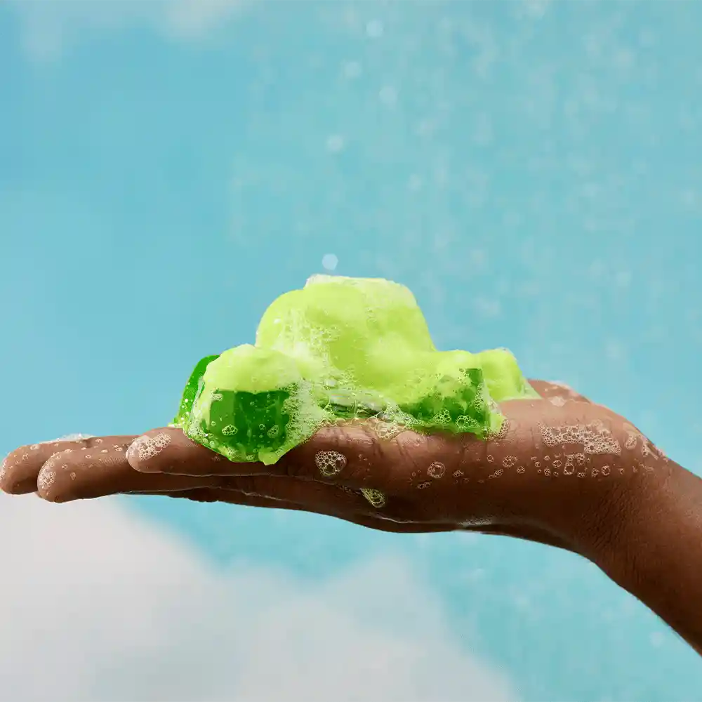 La gelatina de ducha Easter Turtle se desliza suavemente sobre la piel, creando espuma ligera con un refrescante aroma a manzana.