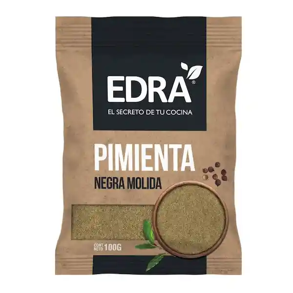 Edra pimienta negra molida. Presentación en bolsa con 100 gramos.