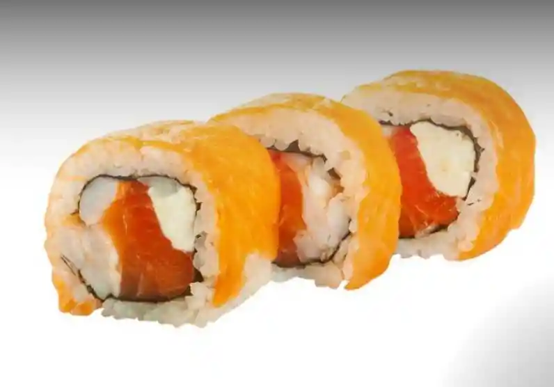 Camarón , salmón y queso crema envuelto en salmón o palta