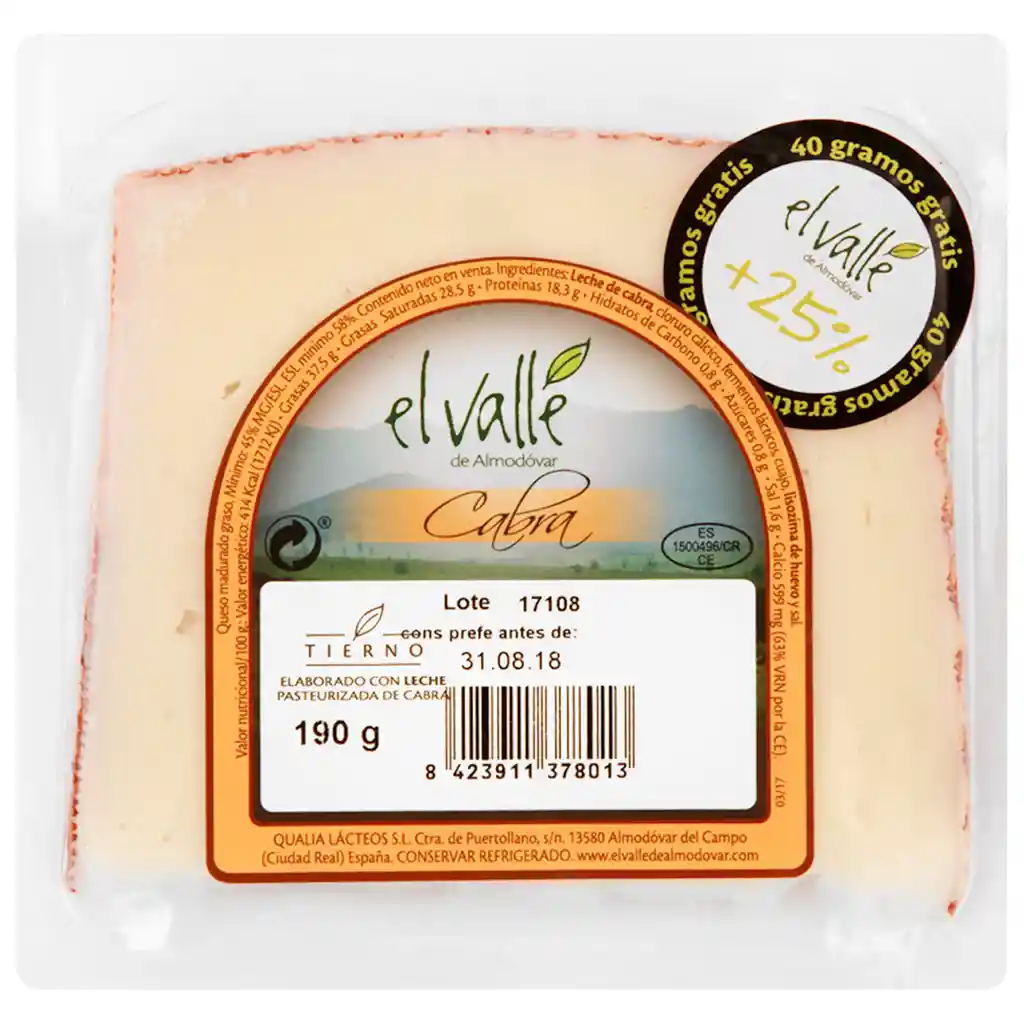 Queso El Valle Cuña De Cabra 150 G packing: Bolsa