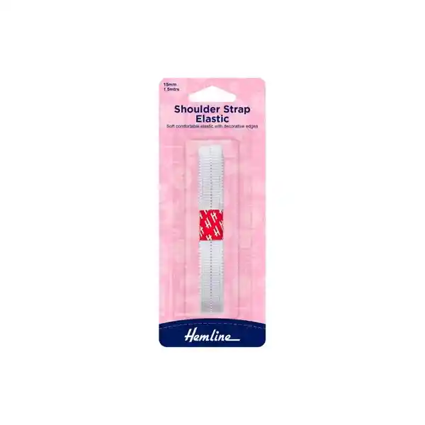 Elastico para bretel suave y confortable para usar en los tirantes de los hombros y del sujetador. Bordes decorados.Color blanco, 15mm de grosor, 1.5m de longitud