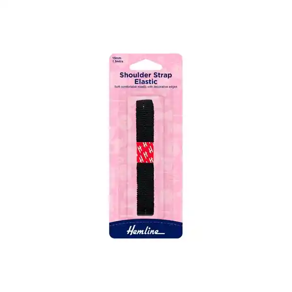 Elastico para bretel suave y confortable para usar en los tirantes de los hombros y del sujetador. Bordes decorados.Color negro, 15mm de grosor, 1.5m de longitud