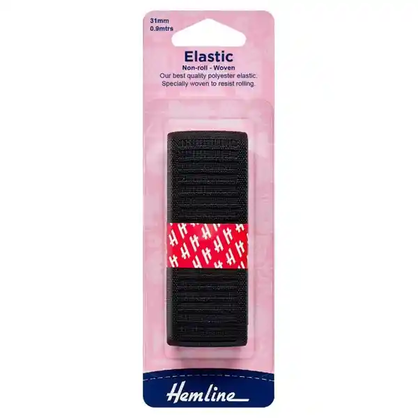 La mejor calidad de poliéster elástico Especialmente tejido para resistir la torsión Muy resistente y la más usada opción cuando se requiere un elástico más fuerte Comúnmente utilizado para pretinas y aplicaciones similares 31 mm de ancho, 0.9 m de longitud