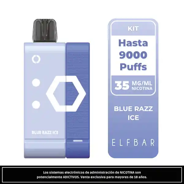 Elfbar KIT Blue Razz Ice 9000 Puffs incluye batería recargable y pod preinstalado de frambuesa azul helada. Un sistema completo listo para usar, que entrega hasta 9.000 caladas con sabor intenso y fresco. Disponible en Drupito.cl.