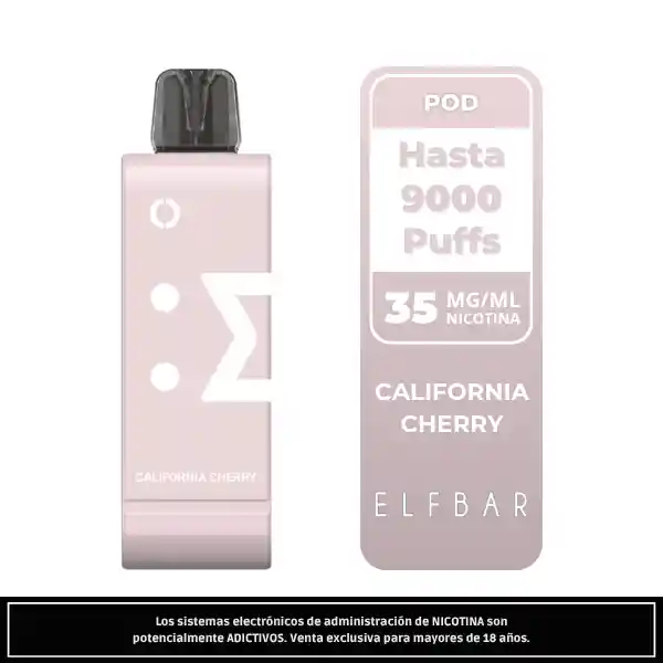 Elfbar POD California Cherry 9000 Puffs ofrece un sabor profundo y dulce de cereza californiana, con un toque suave y equilibrado. Un dispositivo desechable de hasta 9.000 caladas, listo para usar y disponible en Drupito.cl.