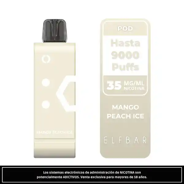 Elfbar POD Mango Peach Ice 9000 Puffs combina mango jugoso, durazno dulce y un final helado refrescante. Un dispositivo desechable de hasta 9.000 caladas, práctico y listo para usar. Disponible en Drupito.cl.