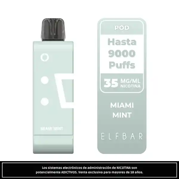 Elfbar POD Miami Mint 9000 Puffs ofrece una menta fresca, suave y limpia, ideal para quienes buscan un sabor refrescante y simple. Un dispositivo desechable de hasta 9.000 caladas, práctico y listo para usar. Disponible en Drupito.cl.