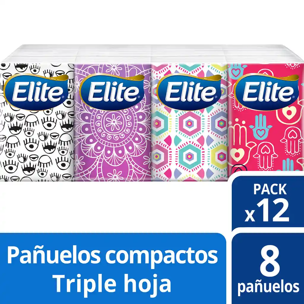 Pañuelos Elite compacto con diseño 12 paquetes de 8 pañuelos c/u