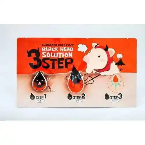 Tratamiento facial en 3 pasos diseñado para eliminar puntos negros, limpiar profundamente los poros y mejorar la apariencia de la piel, ayudando a remover impurezas, controlar el exceso de grasa y dejar la piel más suave y limpia. Ideal para el cuidado de la zona de la nariz. Contiene 1 kit de 3 pasos. Producto original marca Elizavecca. Uso externo.