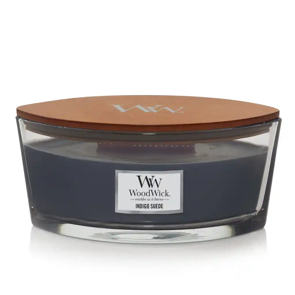 Vela Base Elíptica Indigo Suede Indigo Suede: Una combinación embriagadora de cuero y pachulí, con notas de violeta, ciprés y ámbar. Impresiones: Cuero, violeta, geranio - Ciprés, Gamuza - Ámbar, almizcle, pachulí Experimente la acogedora comodidad de una chimenea encendida en cualquier lugar de su hogar. El crepitar relajante y la llama larga y danzante de WoodWick® con Hearthwick® Flame le permite revivir buenos recuerdos o crear nuevos en un ambiente cálido y confortable. Así que disfruta más que solo una vela, porque el hogar es donde está la SALUD. Peso: 1330g