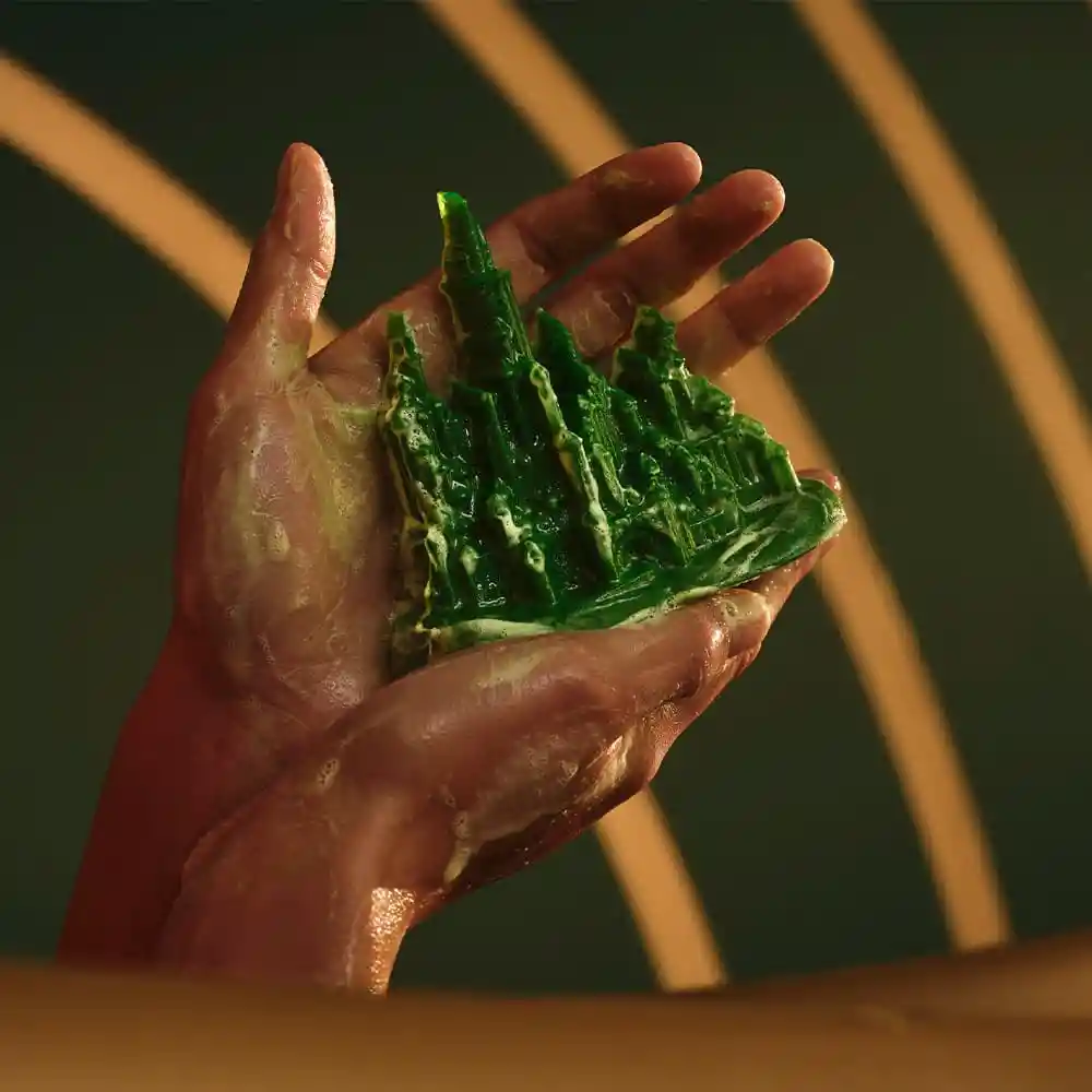 Disfruta de una espuma desafiante con el jabón Emerald City de la colección Wicked x Lush, que combina canela y lima para una limpieza llena de frescura.
