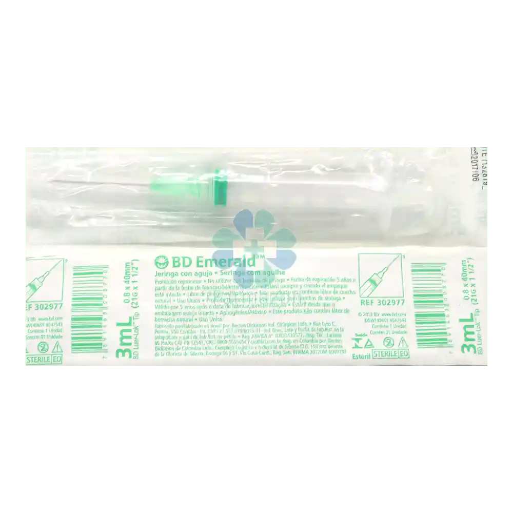 Jeringas Emerald 3Ml 3 Partes/Aguja 21X11/2 Bd U Contiene: Unidad Registro INVIMA: 2012DM-0009183