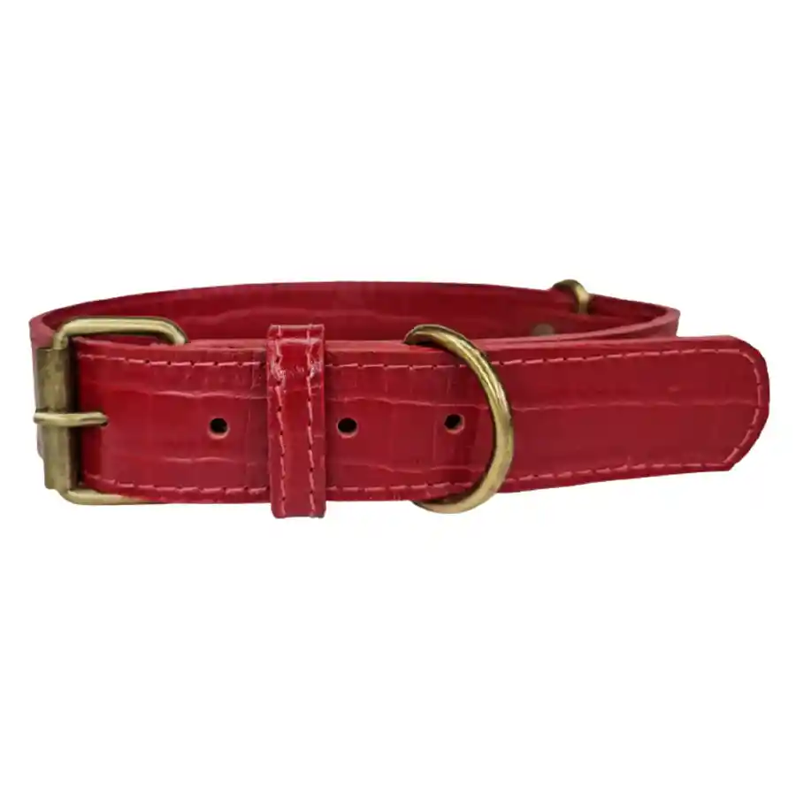 Emilio Collar Cuero Cocodrilo Rojo hebilla envejecida L (40 - 50 cm)