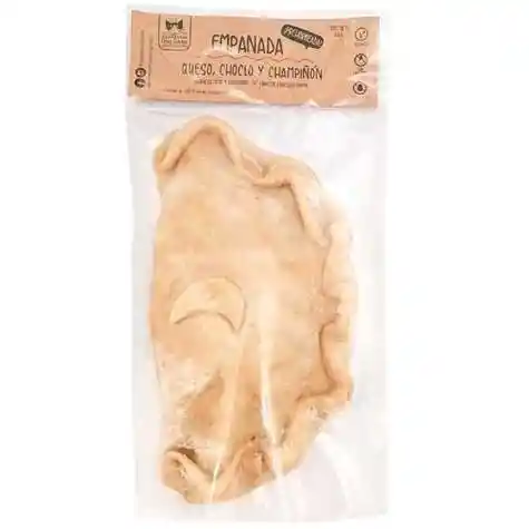 Empanada con queso vegetal, champiñon y choclo. - No apto para personas celiacas y alérgicas a la soya. - Apto para personas vegetarianas y veganas. ¡Vive Vegano!