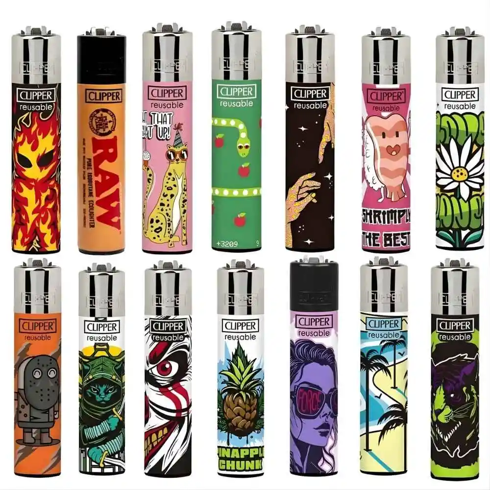 Encendedor Clipper original, práctico y recargable. Cuenta con piedra reemplazable y sistema desmontable, ideal para uso diario. El diseño es aleatorio, por lo que recibirás un modelo sorpresa según disponibilidad. Funcionalidad, calidad y estilo en un formato compacto y resistente.