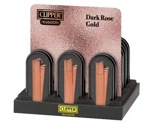 Encendedor Clipper Metálico Color Oro Rosado Presentación en estuche metálico encendedor de piedra recargable con gas butano