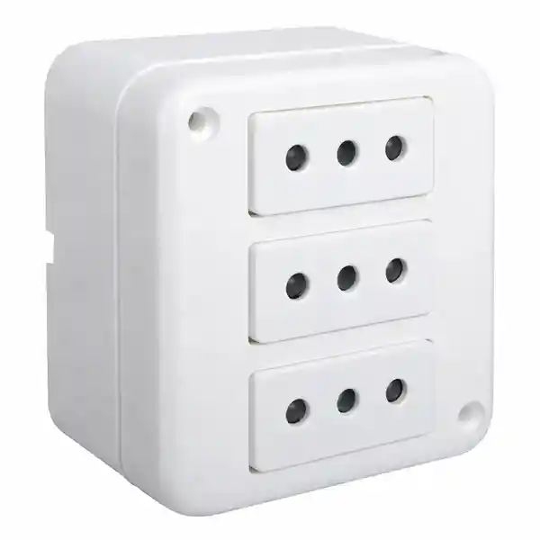 Sobrepuesto Loza Triple en Color Blanco Ideal Para Instalaciones Eléctricas en Espacios Comerciales y Residenciales. Su Diseño Resistente y Funcional Permite Una Conexión Segura y Eficiente de Múltiples Dispositivos Eléctricos. Ahorra Tiempo y Dinero Con Este Enchufe de Calidad!.