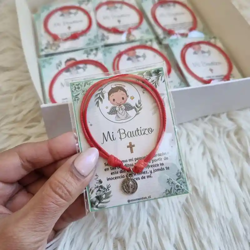 LEER ANTES DE CONCRETAR: . Los encintados se envían como se presentan en la imagen (colgante y color de la foto), LAS TARJERTAS NO SE PERSONALIZAN solo llevan diseño de Bautizo como se muestra en la imagen. . Cada unidad de compra incluye 1 docena de encintados. _____________ 2 PULSERAS CON COLGANTES + 12 TARJETAS DE BAUTIZO . Ideales para entregar como recuerdos de Bautizo. . Elaborados Artesanalmente súper prácticas y ajustables a la muñeca de tus invitados. .Cada unidad de compra incluye 1 docena de encintados. Especificaciones: . Material: Imitación de Cuero / Piel de Serpiente, Colgante Metal Cromado (plateado). . Color de las Pulseras: Rojo . Colgante: San Benito . Tarjetas Motivo: Bautizo . Contenido: 12 Pulseras + 12 Tarjetas + 12 Bolsas de Celofán. NOTA: Las Pulseras se envían como se presentan en la imagen (colgante y color de la foto), las tarjetas no se personalizan solo llevan diseño de Bautizo como se muestra en la imagen