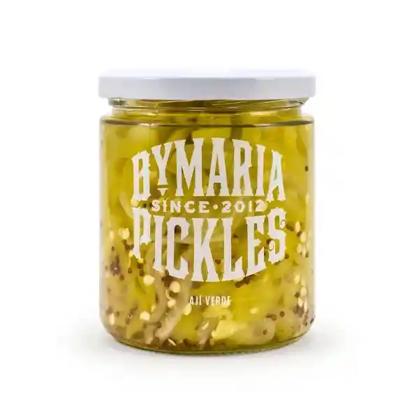 Ají Verde rebanado, acompañado de cebolla en pluma, encurtido en vinagre de manzana y condimentado con sal marina de Cahuil, azúcar, laurel y semillas de mostaza negra maceradas en pisco. Sabor y textura: Suave y sabroso, picante pero refrescante, con un toque ligeramente ácido, de textura crujiente. Picor leve. Usos: Queda bien con todo, en serio. Sánguches, tacos, pizzas, ensaladas, legumbres, carnes, salsas y podria seguir.