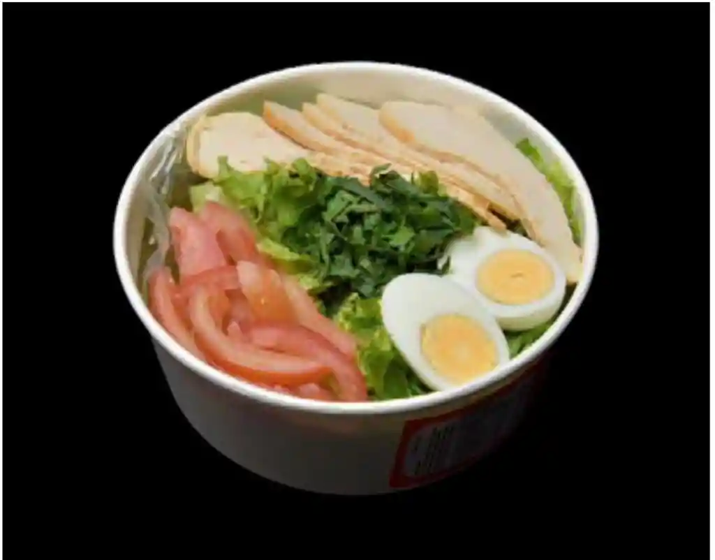 Mix de lechuga, pollo laminado, huevo duro, tomate, rúcula. Aderezo limoneta.