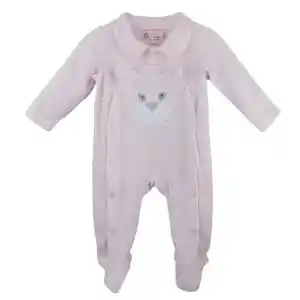 Enterito de Plush Bebé Niña Osito. Tela ultra suave. Color Rosado con Osito bordado y aplicación de orejitas Modelo con broches en toda la parte delantera para facilitar la postura y muda de pañal de tu bebé.
