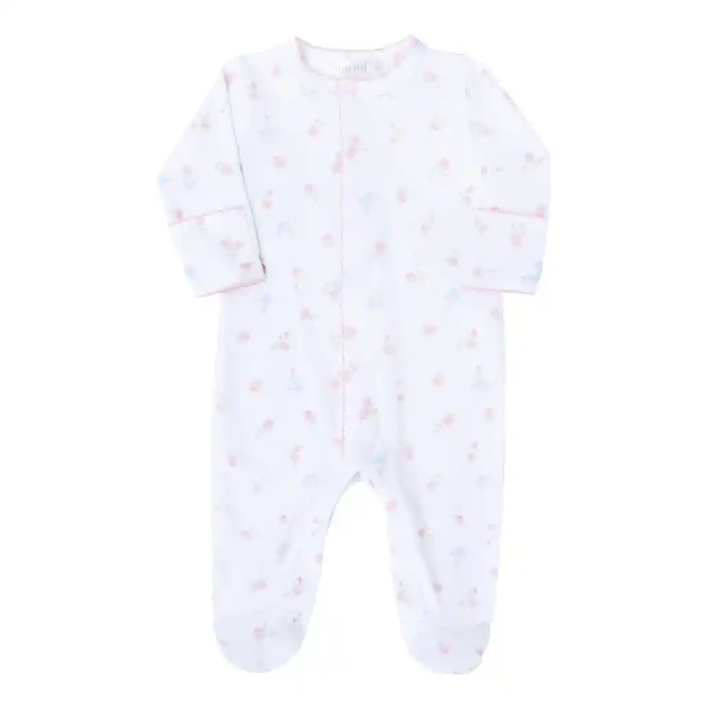 Envuelve a tu bebé en suavidad con nuestro enterito confeccionado en algodón pima 100% peruano, reconocido mundialmente por su delicadeza y calidad superior. Su diseño de pequeñas flores en tonos rosa y azul sobre un fondo blanco lo convierte en una prenda dulce y encantadora. Práctico y seguro, que facilita el cambio sin incomodar al bebé. No usar secadora. Lavado con agua fría.