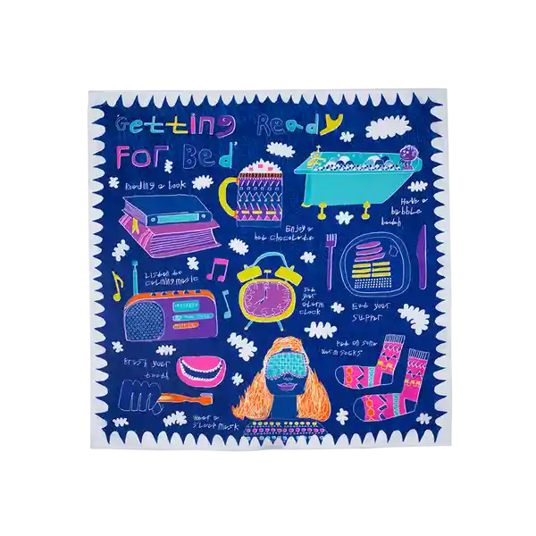 Getting Ready For Bed Knot Wrap Está Hecho de Algodón 100% Orgánico y Presenta Una Ilustración de Stanley Galton de Intoart. Intoart es Una Organización Pionera en Artes Visuales Que Defiende su Visión Fundacional de Que Las Personas Con Neuro Divergencias Sean Artistas y Diseñadores Visibles Iguales y Establecidos. Detalles de mi Knot Wrap 100% Algodón Orgánico 70 cm x 70 cm Modo de Uso Con Unas Medidas de 70 cm x 70 cm Este Knot Wrap es el Regalo Reutilizable Perfecto Para Una Gran Variedad de Tus Productos Lush Favoritos Así Como Una Bufanda o Pañuelo Para Llevar Puesto. Sabías? Las Ilustraciones de Stanley Galton Capturan Las Partes Más Icónicas de Las Personas Lugares y Criaturas Que ve. Hablando de su Diseño Dice: ''Mi Diseño Knot Wrap Trata de lo Que Debes Hacer Para Asegurarte de Que Duermes Muy Bien Por la Noche. Algunas Cosas Son Importantes Como Acordarte de Poner el Despertador y Otras Son Más Relajantes Como Beber Chocolate Caliente. Yo Hago Algunas de Estas Cosas Pero no Todas. Cada Persona Puede Hacer Cosas Diferentes Así Que Deberías Probarlas Todas. Mi Consejo Favorito Para la Gente es Darse un Baño de Burbujas Porque el Hombre Parece Muy Cómodo y me Gusta Mucho la Barba Burbujeante Que le he Dado'' un Regalo Por Partida Doble! Si Quieres Envolver Algunos de Tus Productos en un Knot Wrap Solo Debes Indicarlo en el Mensaje Del Pedido y Nosotros lo Envolvemos Para ti!