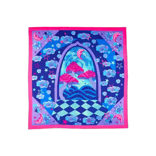Twilight Knot Wrap es un Pañuelo Envoltorio Inspirado en Los Sueños y la Imaginación Ideal Para Envolver Regalos o Llevar Como Accesorio Creativo y Colorido.