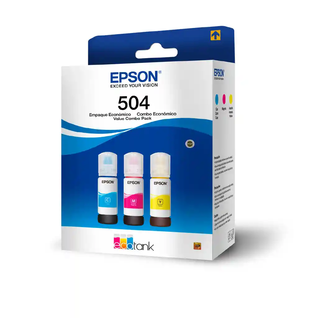Características Marca: Epson Descripción TINTAS ORIGINALES EPSON T504 Todos los Colores COMBO DE 4 COLORES. (4 botellitas) Colores Disponibles: - Negro: Capacidad 127 ml - Cyan: Capacidad 70 ml - Magenta: Capacidad 70 ml - Amarillo: Capacidad 70 ml Compatibilidad: L4150, L4160, L6161, L6171, L6191; EcoTank ITS L4150, L4160