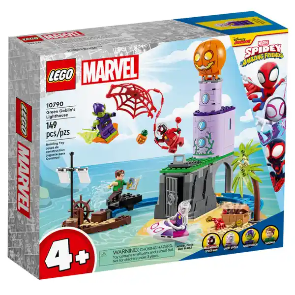 Desde la cueva subterránea hasta la calabaza situada en lo alto del faro, el set LEGO® Marvel Equipo Spidey en el Faro del Duende Verde (10790) está lleno de acción diseñada para niños y niñas a partir de 4 años. Un tesoro, trampas y batallas de superhéroes El set incluye 4 minifiguras (Miles Morales, Fantasma, Sandman y el Duende Verde), un barco pirata naufragado, una vía por la que transportar el tesoro robado, una cueva que sirve de cárcel, la base del Duende Verde en el faro y numerosos accesorios. El ladrillo para principiantes dará a los niños la confianza suficiente para construir y reconfigurar el set, guiados por sencillas instrucciones en forma de colorida historia visual, y la app LEGO Builder les ofrecerá aún más diversión con intuitivas herramientas para visualizar el modelo mientras construyen. Diversión en familia Con los sets 4+, peques y adultos pueden construir juntos, tanto si son experimentados fans de LEGO como si es la primera vez que conectan ladrillos LEGO. • Superhéroes en el mar: El set LEGO® Marvel Equipo Spidey en el Faro del Duende Verde (10790) cuenta con icónicos personajes y múltiples posibilidades de juego diseñadas específicamente para niños y niñas a partir de 4 años. • Acción cargada de autenticidad: Incluye minifiguras de Miles Morales, Fantasma, Sandman y el Duende Verde, además de un barco pirata naufragado construible, una vía, una cueva que sirve de cárcel y la base del Duende Verde en el faro. • Muchas formas de jugar: Los peques podrán interpretar infinitas aventuras del bien contra el mal en las que no faltarán ni héroes ni villanos LEGO® Marvel ni un cofre del tesoro robado. • Regalo para niños y niñas: Con su ladrillo para principiantes y sus sencillos pasos de construcción, este set favorece el desarrollo de los peques a partir de 4 años y les permite disfrutar sin fin de una experiencia de juego imaginativa y activa. • Diversión reconfigurable: El faro mide aproximadamente 22 cm de altura, 31 cm de anchura y 21 cm de profundidad. • Construcción creativa: La guía en imágenes impresa muestra el objetivo de cada paso de construcción y la app LEGO® Builder proporciona herramientas digitales de acercamiento y giro para que los niños visualicen el modelo a medida que lo construyen. • Amplía la diversión: La inmensa gama de sets LEGO® 4+ introduce a los peques en el universo de sus películas, personajes de televisión y héroes cotidianos favoritos. • Calidad garantizada: Los componentes LEGO® cumplen estrictas normas de calidad del sector, por lo que ofrecen siempre las mismas cualidades, son compatibles entre sí y se conectan con facilidad una y otra vez. • Seguridad acreditada: Los componentes LEGO® se dejan caer, se calientan, se aplastan, se retuercen y se analizan para verificar que satisfacen rigurosos estándares mundiales de seguridad.