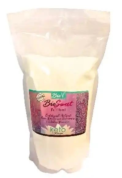 100% puro Eritritol en polvo cristalino No aumenta la glucosa en sangre. Apto para diabéticos. Apto para vegetarianos, veganos y celíacos Sabor casi idéntico al azúcar y no produce efectos adversos a la salud. KETO Es ideal para su uso en la repostería, merengues, helados y bebidas.