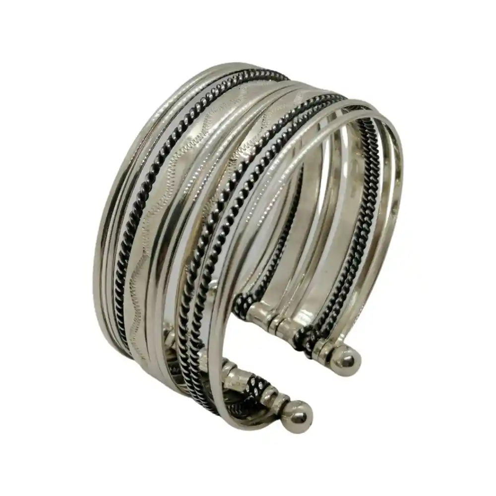 Hecha a mano en plata 950. Dimensiones: 3 cms ancho aproximadamente. Ajustable.