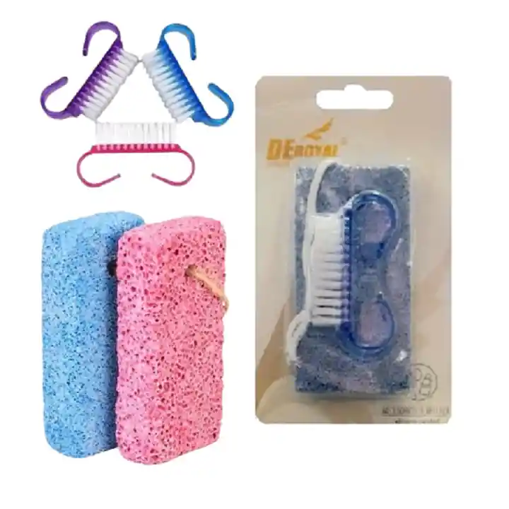 Set de Escobilla y Piedra pómez para la limpieza de los pies. La piedra pómez es un excelente removedor de callos, exofiliante para piel dura, seca y muerta en talones, cuerpo y pies..