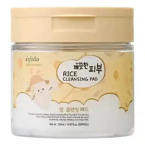 Almohadillas limpiadoras Esfolio Rice Cleansing Pad formuladas con extracto de arroz que limpian suavemente el maquillaje, impurezas y células muertas mientras iluminan, hidratan y suavizan la piel, ayudando a mejorar la textura y el tono para un rostro más uniforme y radiante; ideales para todo tipo de piel, especialmente piel opaca. Contenido: 60 unidades. Uso externo.
