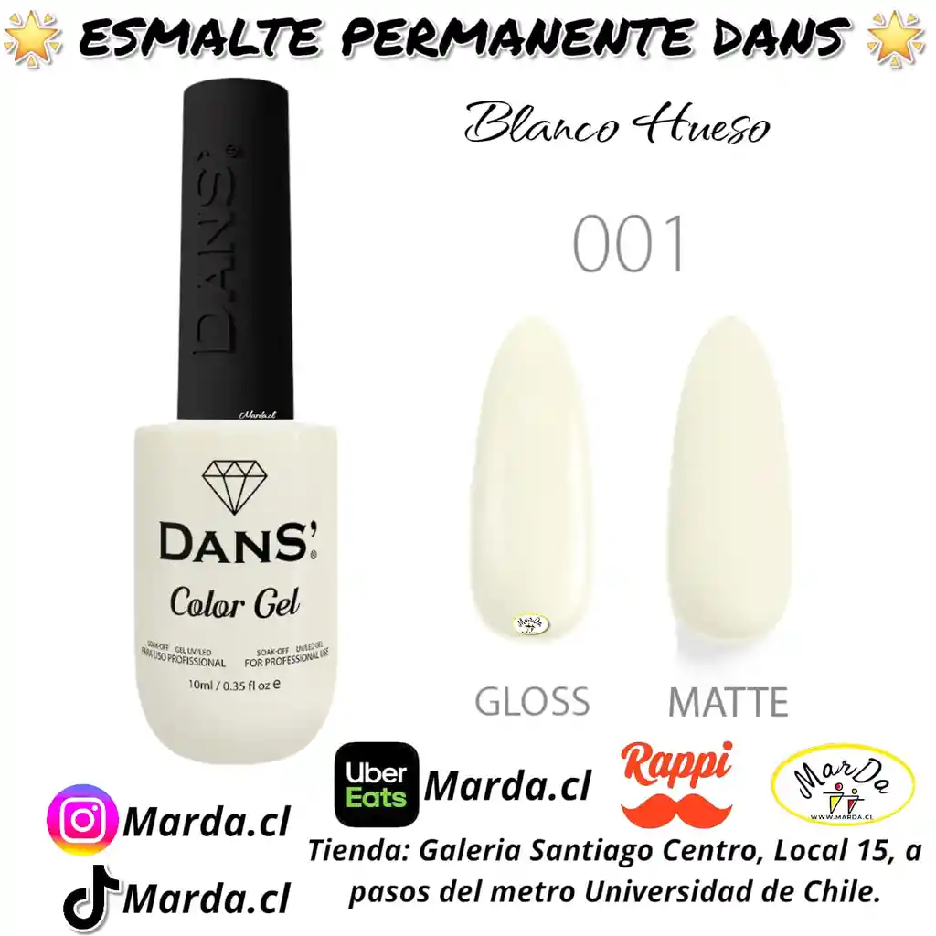 Es un tipo de manicure que se realiza con esmaltes permanentes Dans. Se fijan con lámparas UV/LED. También se puede realizar la pedicure con el mismo método y con unos resultados extraordinarios y gran durabilidad. COLOR 001 BLANCO HUESO