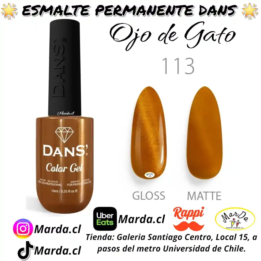 Después de la preparación de la uña, aplica la capa de esmalte permanente Dans Ojos de Gato, y colocas el imán sobre las uñas durante 10-15 segundos para obtener el efecto de ojos de gato, y luego secas inmediatamente con lámpara UV durante 2 minutos o con lámpara LED durante 60 segundos. y Listo! Diseña como quieras tus uñas. Código 113